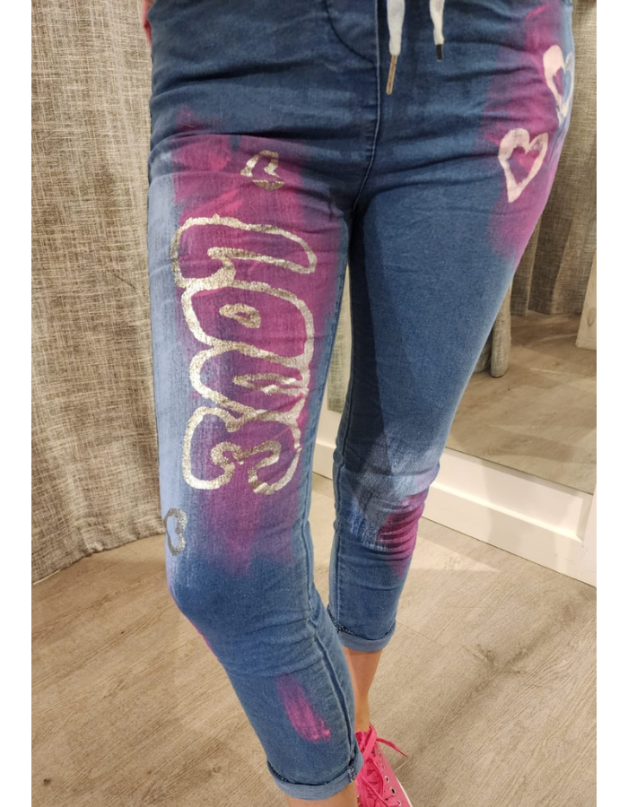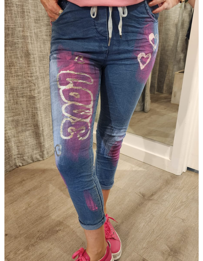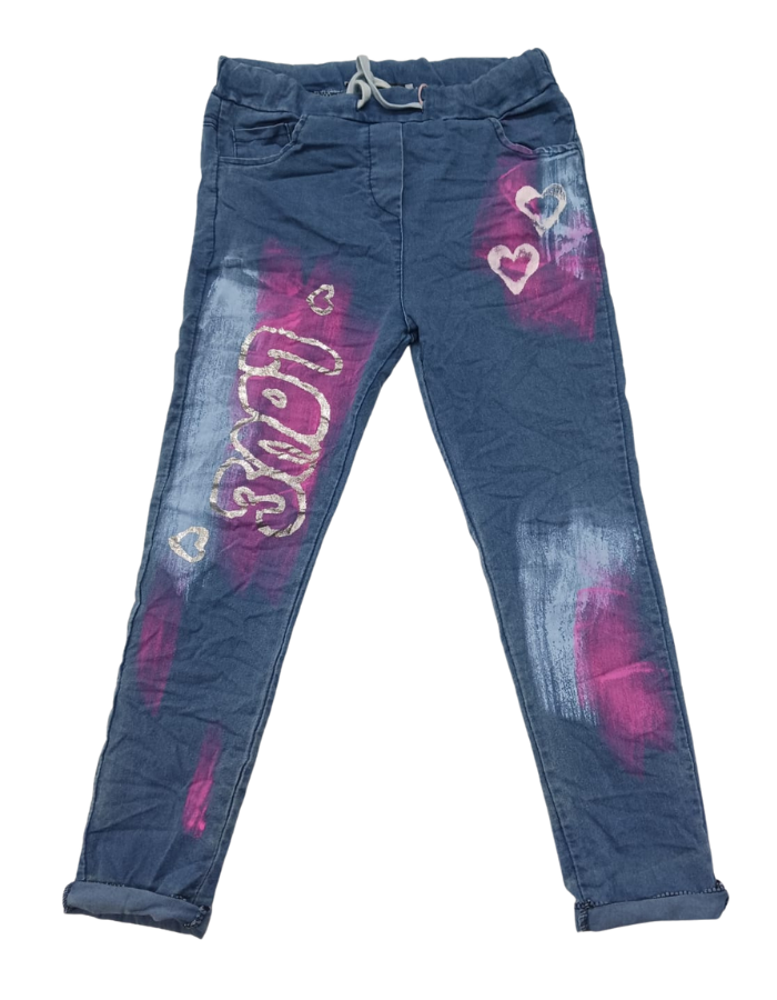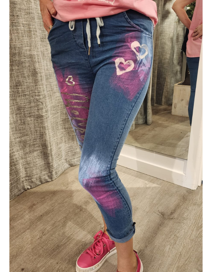 Denim Love & Heart Tie-Waist Pants