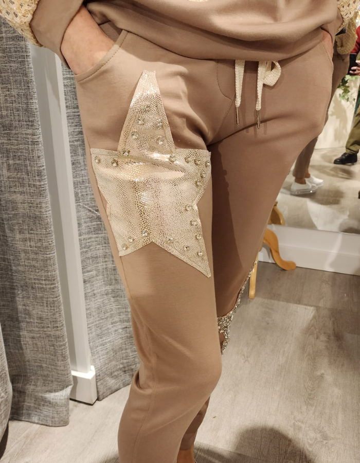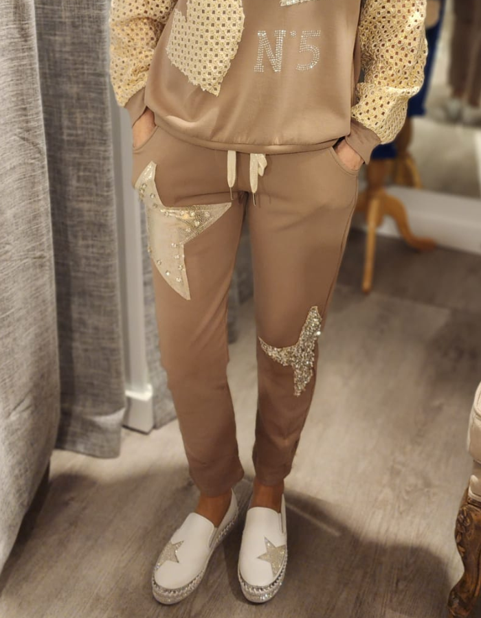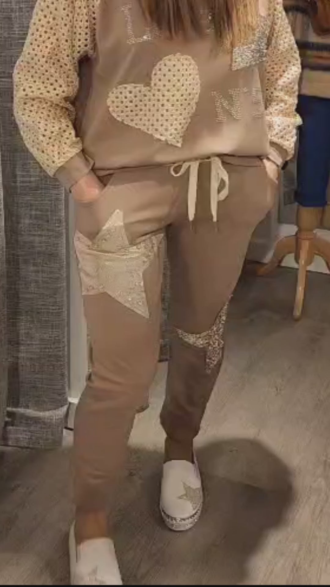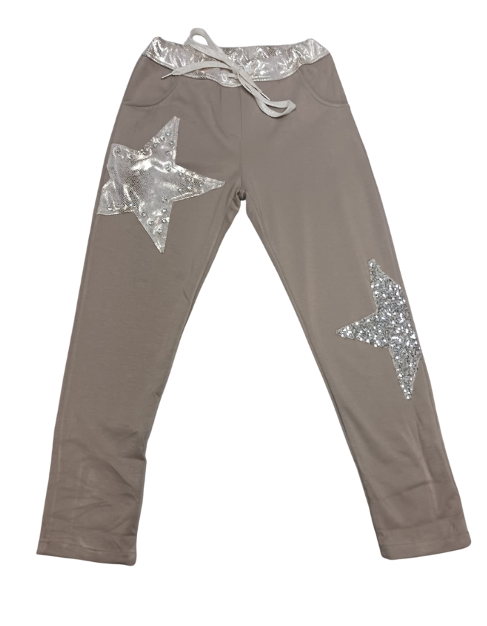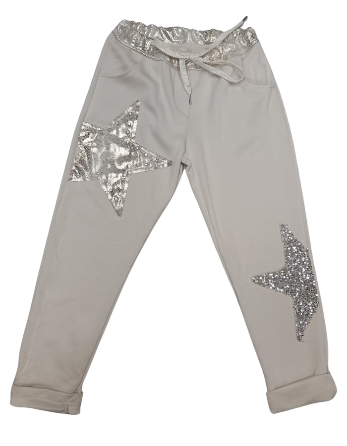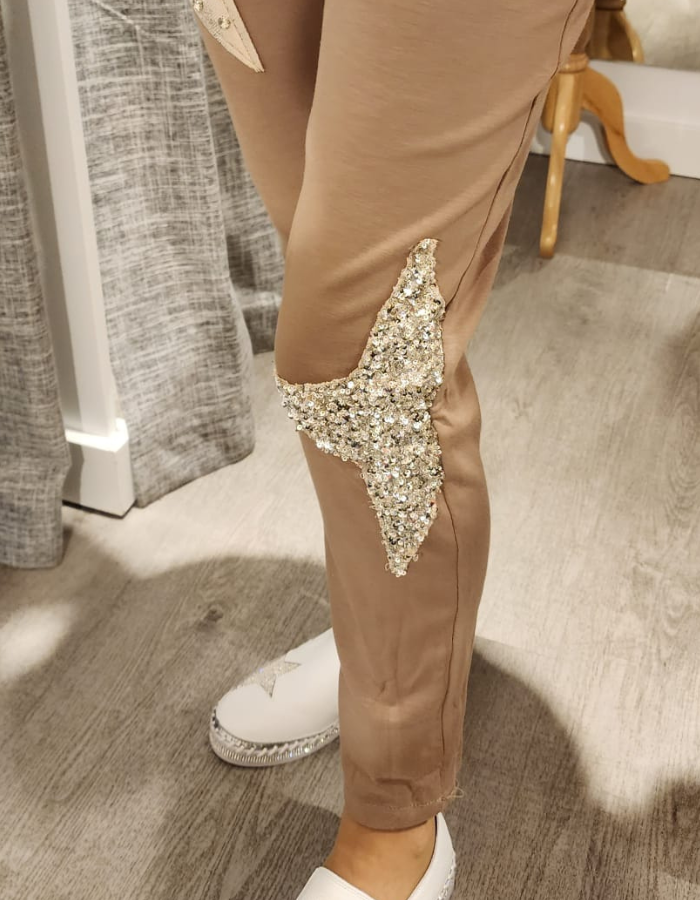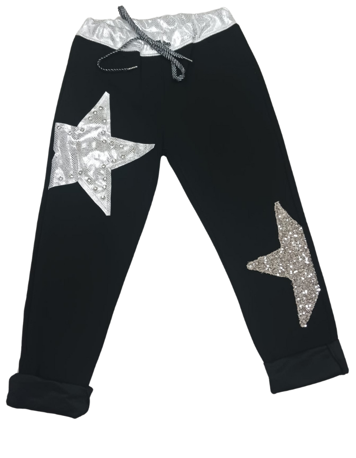 Add a touch of sparkle to your winter wardrobe with our Sequin Star Leg Track Pants – the perfect blend of comfort, style, and standout detail. Made from a soft viscose and nylon stretch fabric, these stylish women’s track pants feature sequin star embellishments down each leg, creating a fun, eye-catching look ideal for everyday wear or casual outings.