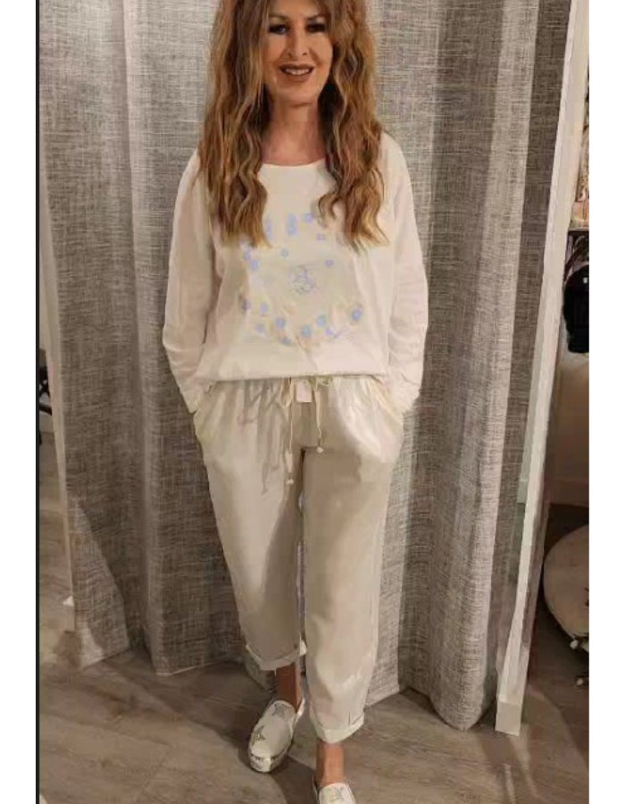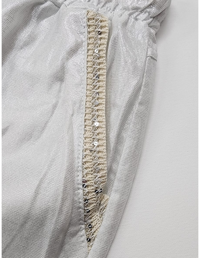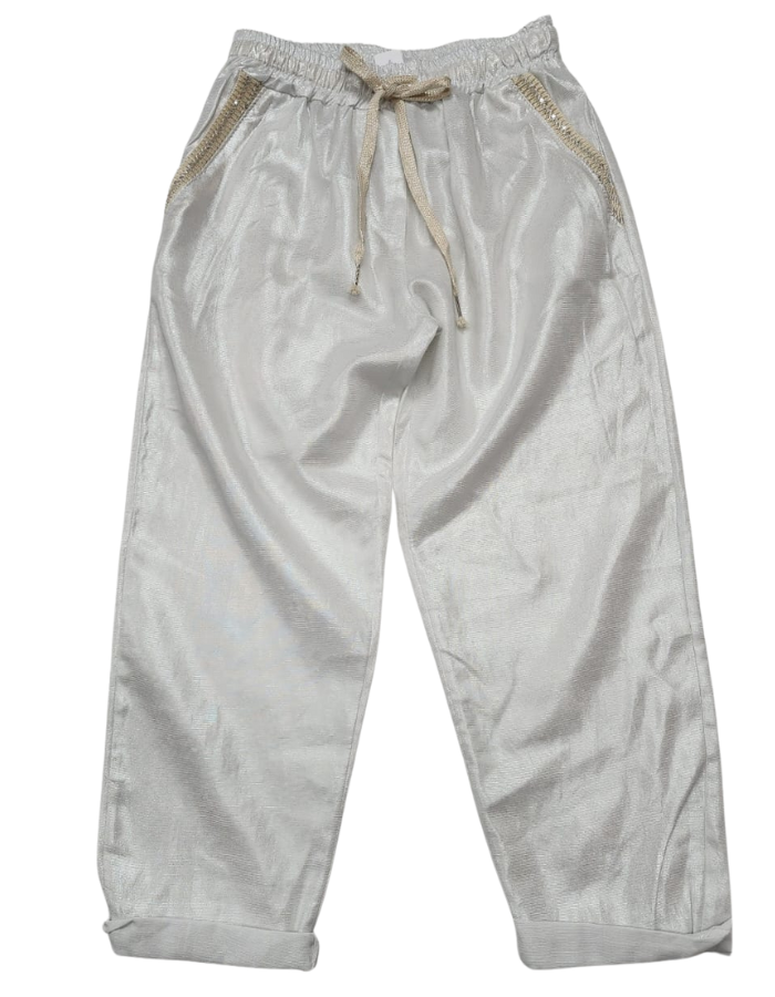 Shiny Linen Pants with Gold Braid Pocket Detail
